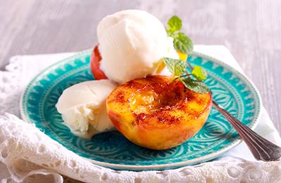 Grill peaches, flesh sides down until softened and grill marks appear, about 4 minutes.